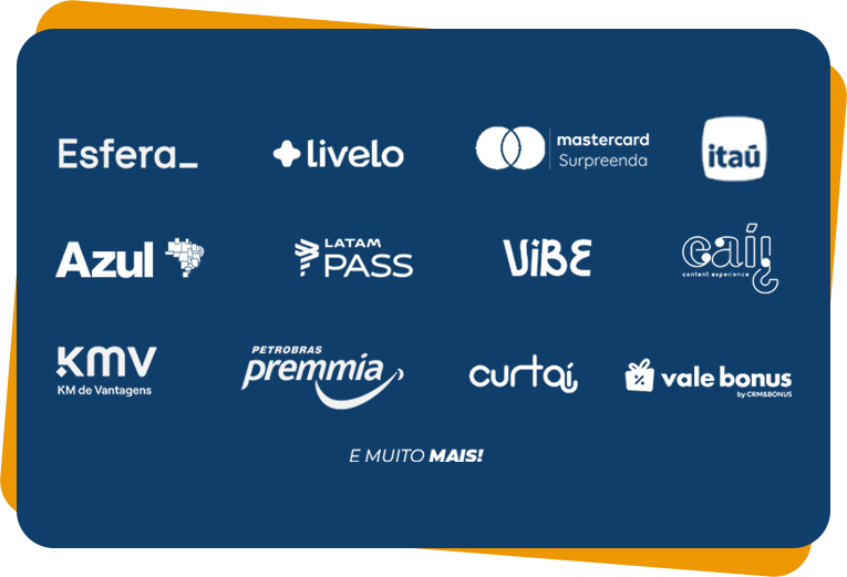 Para isso, oferecemos um ecossistema completo de engajamento e incentivo, composto por um catálogo vasto com as melhores marcas do mercado. São mais de 2.000 produtos selecionados para garantir que sua marca esteja presente nos momentos de lazer e conquista dos seus clientes.